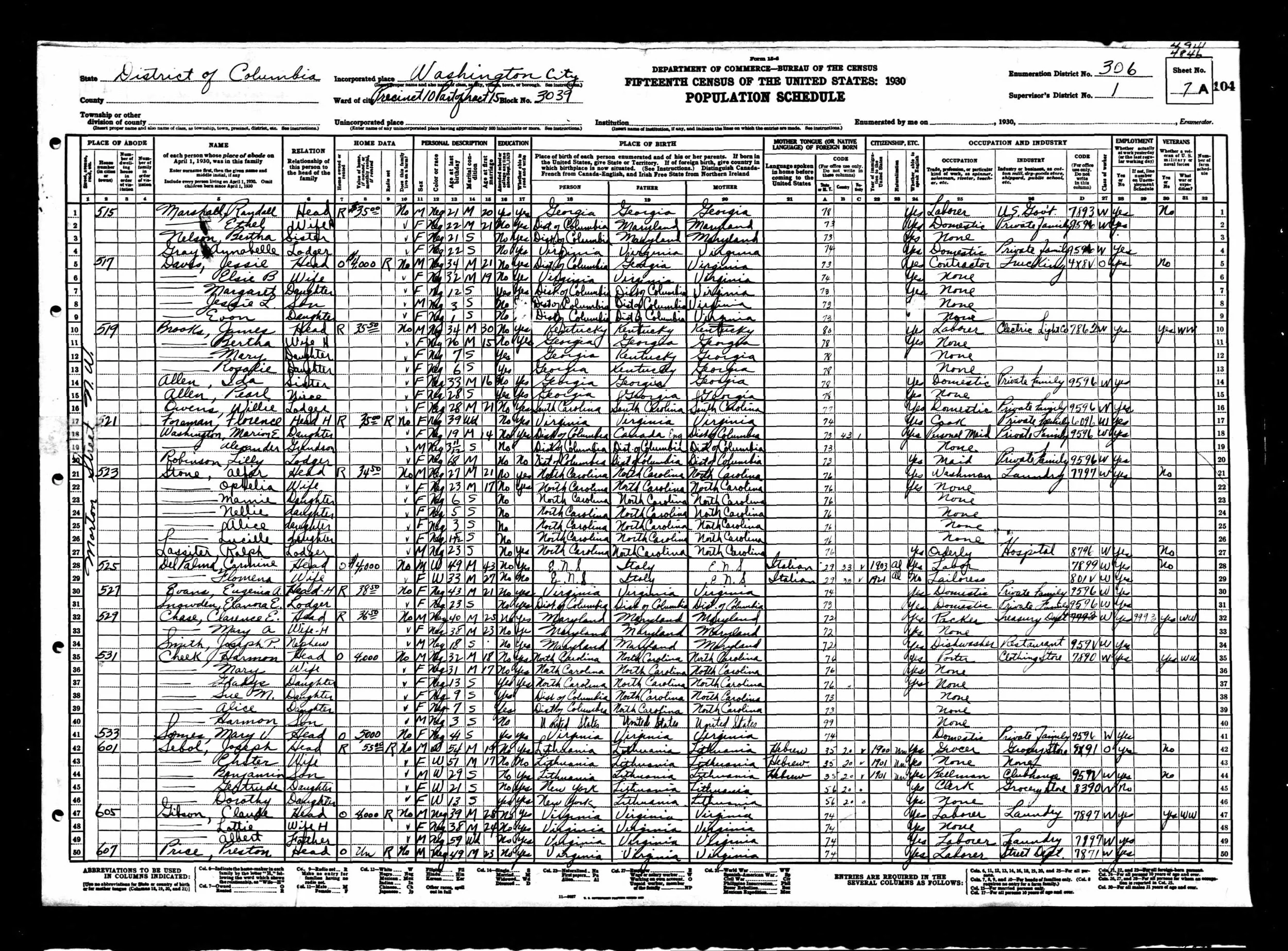 Bertha did not live very long after this census was taken, she died on July 17, 1941. In a remarkable turn of events she is buried in an historic, and protected, place in Washington, DC—Woodlawn Cemetery (in SE, DC - Plot - Section C, Lot 8, Site 4).